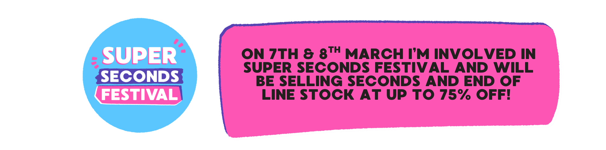 Super Seconds Festival (formerly Super Seconds Saturday) is a bi-annual event where lots of independent makers from across the UK (and further afield!) sell their seconds/misprints/older stock at significantly reduced prices.